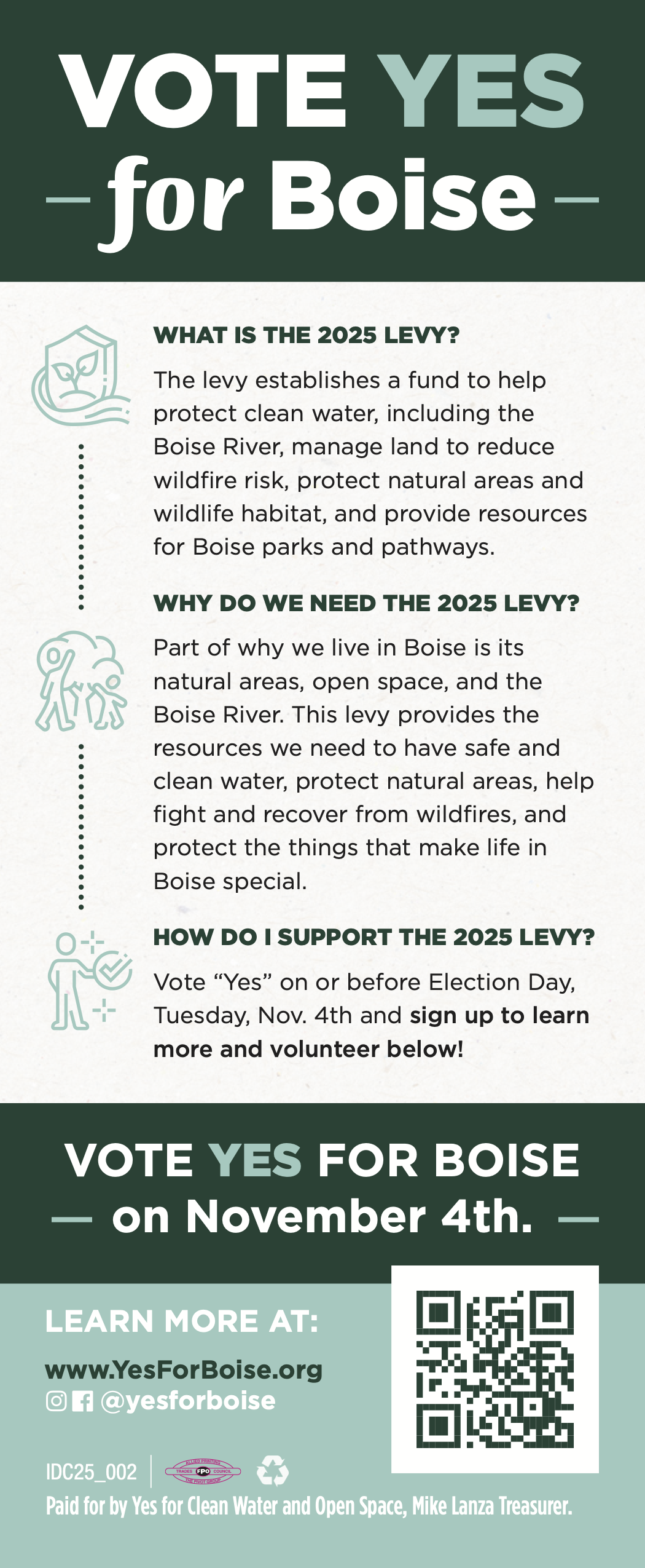 If you would like more than one sign or have special questions, please reply to the confirmation email or reach out to John (John@YesForBoise.org).
